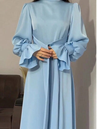 فساتين حريمي ثوب سهرة نسائي أنيق مزين بالكشكشة والربطة، من تصميم اللحام والياقات الرجعية، من القماش الأطلسي الصلب، لإطلالة مميزة
