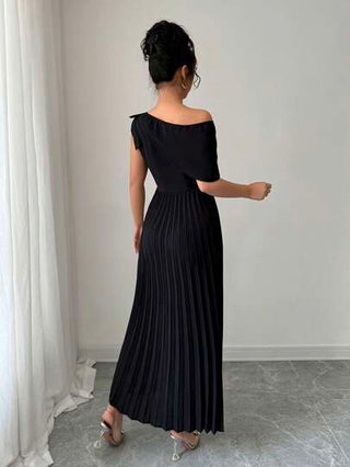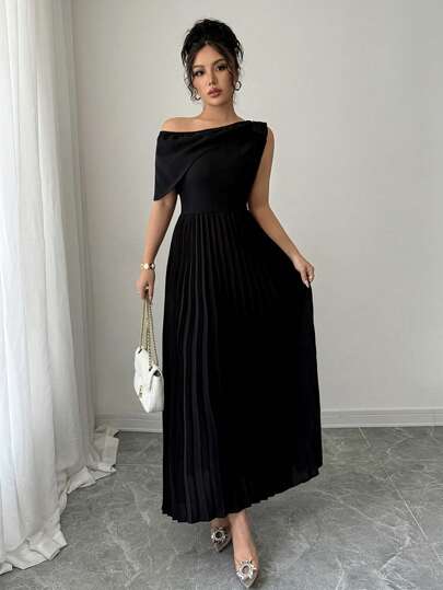 فساتين حريمي Elenzga فستان أنيق للنساء، رقبة فرنسية غير متماثلة، خصر ضيق، تنورة على شكل حرف A، مناسب للخروج الصيفي، المواعدة، العطل، مهرجان الموسيقى، رمضان، الزفاف