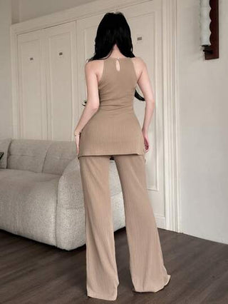 طقم حريمي قطعتين Feyla العيد مجموعة من قطعتين للنساء، توب بلا أكمام لون سادة و بنطلون, موضة بسيطة مناسبة للصيف