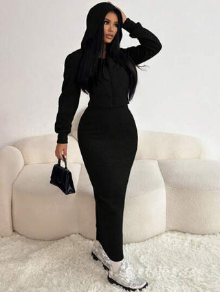 VaVaBold طقم قطعتين للنساء، قميص هودي أزرق وفستان تريكو رياضي ذو ظهر مرن، مبطن حراري، مناسب للخريف والشتاء