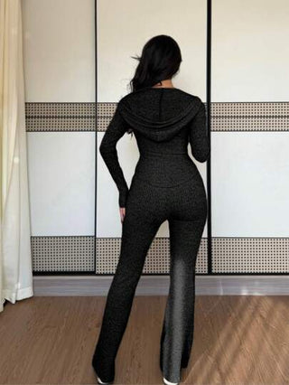 Chiquease 2 قطعة / مجموعة كاجوال قميص ثقيل رياضي مقنع مع جيوب وسروال كشكش مصبوغ للنساء ، متعدد الاستخدامات للارتداء اليومي ، الخريف / الشتاء