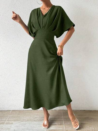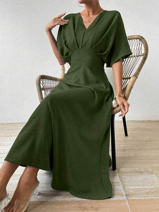 فساتين حريمي Rafferiza فستان نسائي قصير الأكمام ملائم الوسط باستخدام غضن الخفقان، فستان طويل للنساء