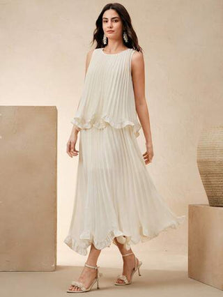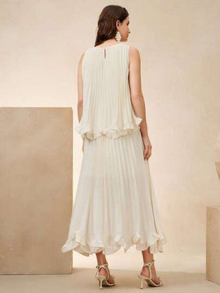 طقم حريمي قطعتين Anewsta مجموعة ملابس علوية وتنورة قطعتين بتصميم أنيق رومانسي مناسبة للعطلات والمهرجانات ولحفلات العشاء لدى السيدات ، بأكمام مجعدة بلا أكمام، ملائمة للربيع والصيف