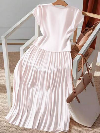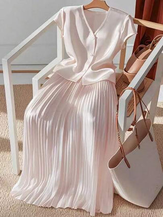 طقم حريمي قطعتين Franclia مجموعة ملابس علوية أنيق بياقة على شكل V وتنورة على شكل A مطوية ذات لون أحادي للنساء