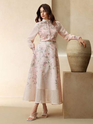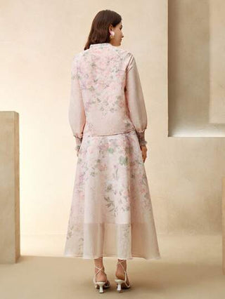 طقم حريمي قطعتين Anewsta طقم بلوزة بأكمام طويلة ذات طبعة زهرية أنيقة وتنورة متوسطة الطول، مناسب لحفلات الضيافة، المواعدة، المناسبات، إطلالات الربيع للنساء