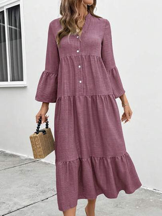 فساتين حريمي LUNE فستان نسائي طويل كاجوال بياقة مستديرة أحادي الصدر وأكمام طويلة