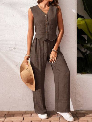 طقم حريمي قطعتين Frenchy طقم تانك توب وسروال لون أحادي للإجازة والرحلات الكاجوال، قطعتان