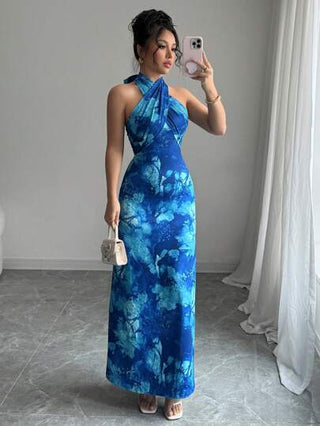 فساتين حريمي Elenzga فستان ماكسي متعدد الطبقات مطبوع بصباغة الربط والصبغ، رقبة متعددة