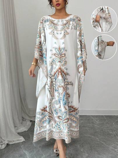 فساتين حريمي Rafferiza رداء فضفاض مطبوع رقمي أنيق، بياقة مستديرة، وأكمام 3/4، للنساء في الربيع والصيف