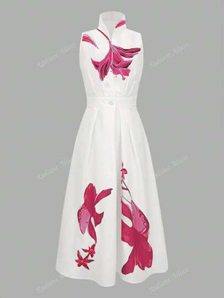 فساتين حريمي فستان طويل بقصة A مطبوع بنقشة الأزهار ذو ياقة على شكل حرف V وأزرار عند الخصر، إطلالة ربيعية وصيفية جديدة