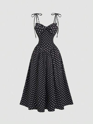 فساتين حريمي Sweetra فستان طويل لقضاء العطلات للنساء بطبعات فراشة وأحزمة مربوطة الخصر وظهر مكشوف، بطراز البولكا نقاط باللون الأحمر على الطراز الفرنسي الأنيق