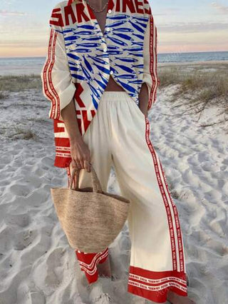 طقم حريمي قطعتين مجموعة قطعتين مطبوعة بنمط السردين للنساء للعطلات الشاطئية المريحة لحفلات الإستراحة أو الفزعة في فصول الربيع والصيف، زي إطلالة كاجوال بوهيمية صيفية راحة للعطلات