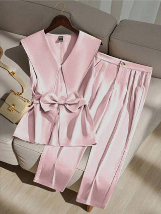 طقم حريمي قطعتين Franclia بدلة سيدات مكونة من قطعتين - ملابس علوية ذات ياقة من الشال وبنطلون ، أناقة