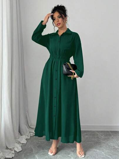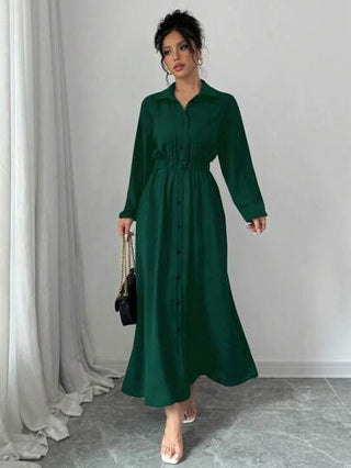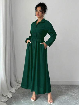 فساتين حريمي Elenzga فستان قميص طويل أنيق أحادي اللون بأكمام طويلة وجيوب للنساء، ملابس نسائية طراز ماكسي للخريف