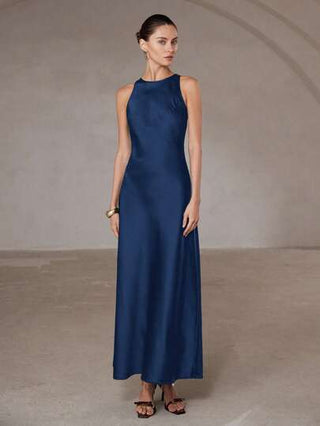 فساتين حريمي Aveloria Modichic فستان نسائي أنيق بقص مائل ذو وجهين شبه الساتان مصنوع من الأسيتات، قطع الخط A بدون أكمام، منحٍ للمرأة