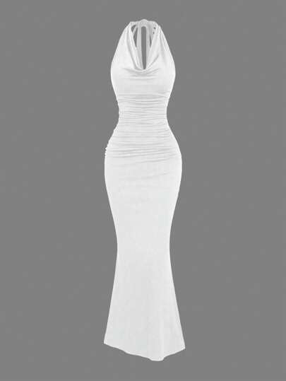 فساتين حريمي Sweetra فستان ضيق بتصميم ذيل حورية البحر بياقة منسدلة للنساء باللون الأسود ، للحفلات