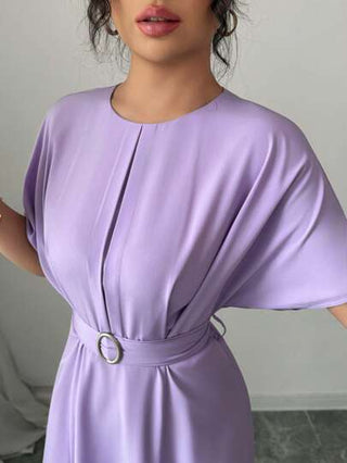 فساتين حريمي Elenzga فستان اللون الأحادي وأكمام على شكل خفاش، للصيف والطقس العادي