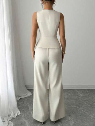 طقم حريمي قطعتين Elenzga طقم أنيق من ملابس علوية بدون أكمام مطرزة شبكية معقودة عند الخصر مع بنطلون، بلون أصفر كريمي، للعطلات والذهاب إلى العمل