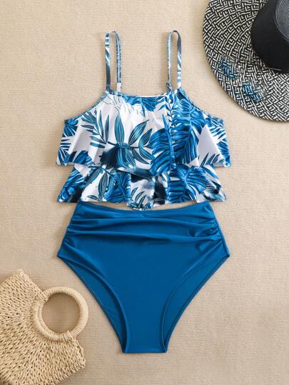 طقم تانكيني حريمي Swim طقم ملابس سباحة تانكيني للنساء بتنانير مكسرة وبوديهات مثلثة عالية الخصر