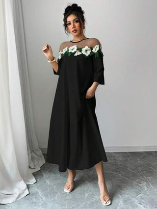 فساتين حريمي Elenzga فستان نسائي أنيق مزين بقطع شبكي مطرز بالأزهار - طراز أزهار عشوائي