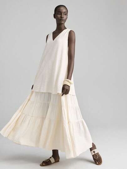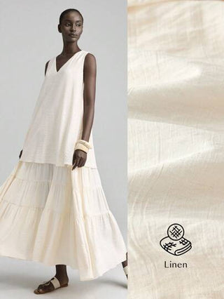 فساتين حريمي Ontre فستان مزيف ذو قطعتين، تصميم جديد لعام 2025، أسلوب حفلات الموسيقى الريفية والعطلات، خليط من الكتان، تصميم منسدل، بدون أكمام، رقبة على شكل حرف V، فستان متداخل الطبقات، ملابس كاجوال/للعطلات، فستان ماكسي للربيع والصيف