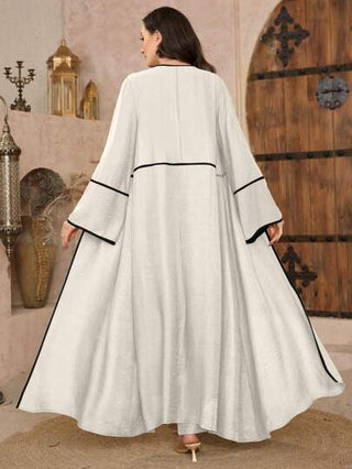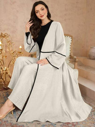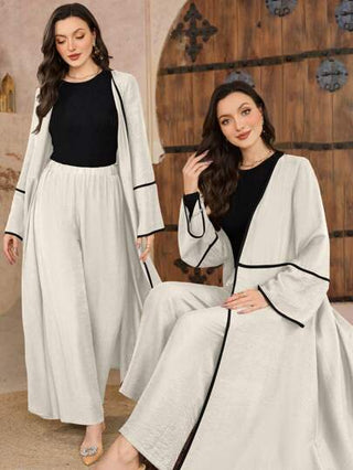 طقم حريمي قطعتين Al Najma مجموعة نسائية متكونة من 2 قطعة، جاكيت أمامية مفتوحة بأكمام الجرس ذات لون متباين وبنطلون خصر مطاطي. للربيع/الصيف