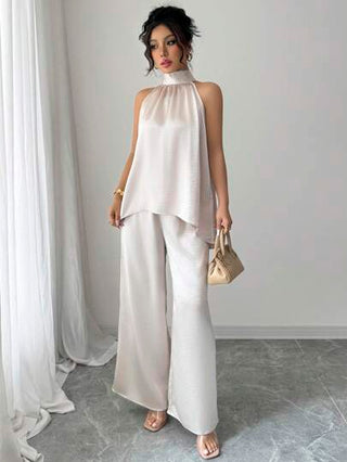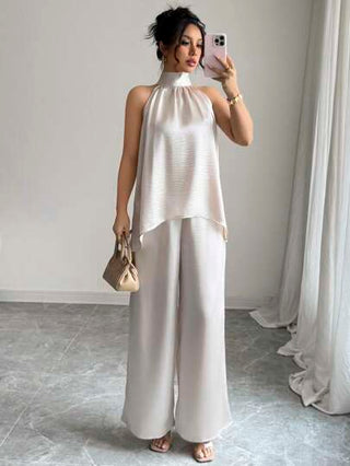 طقم حريمي قطعتين Elenzga 2 قطعة مجموعة سيدات صيفية أنيقة جديدة، تتكون من ملابس علوية طوب باللوكات العليا مكسرالياقة وبنطلون واسع الساق خصر عالٍ