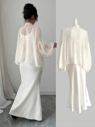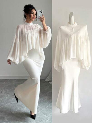 طقم حريمي قطعتين Elenzga 2 قطعة غطاء إطلالة نسائية حديثة بطراز صيني من الشيفون - وشاح بياقة عمودية وقائي من الشمس وخفيف الوزن، مناسب للصيف والتنانير