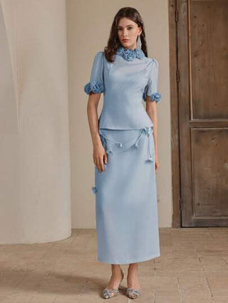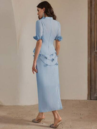 طقم حريمي قطعتين Anewsta مجموعة فستان ماكسي بتصميم زهري ثلاثي الأبعاد مع خصر مشدود، قطعتان/المجموعة