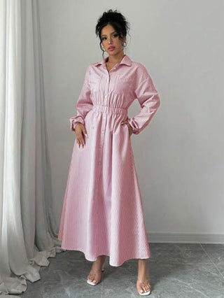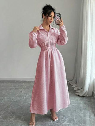 فساتين حريمي Elenzga فستان قميص كاجوال ماكسي للنساء ذو ألوان مشرطة ويُزر أمامي، ملابس نسائية للربيع والخريف