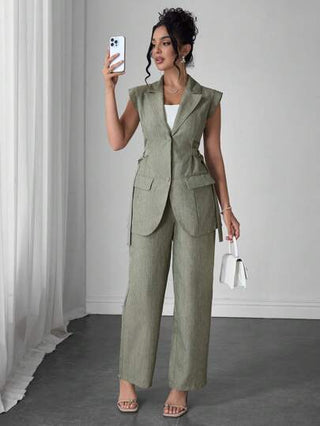 طقم حريمي قطعتين Modelyn العيد طقم أنيق حديث للنساء من قطعتين، تصميم خصر مشدود من الجانب، محبوك من القطن الحريري، مناسب لفصلي الربيع والصيف