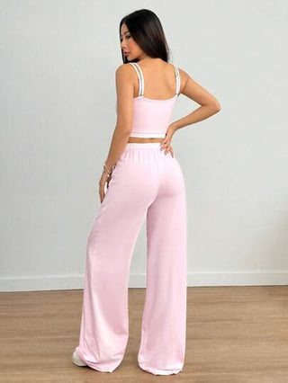 Flirla مجموعة كاجوال من السروال والحماية الرياضي الرمادي الداكن اللون للنساء للصيف، من قطعتين مرقّع (قميص وبنطلون ذو خصر مرتفع)