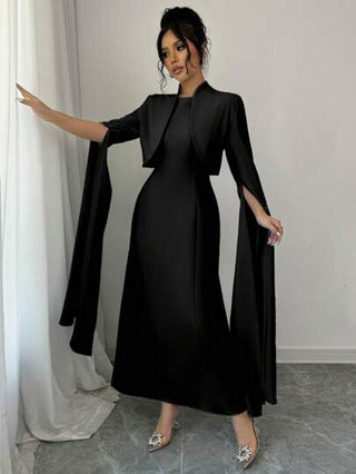 طقم حريمي قطعتين Elenzga زوج (2 قطعة): فستان بلا أكمام + جاكيت قصير بأكمام مبالغ فيها