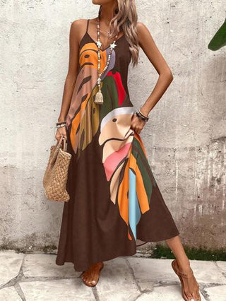 فساتين حريمي EMERY ROSE فستان ماكسي نسائي بتصميم عصري مطبوع بأوراق ملونة وطبقات حمالة