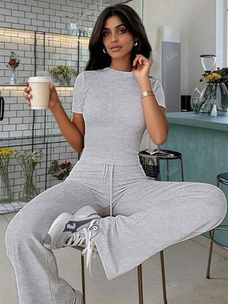 بدلة رياضية للنساء في فصل الربيع، تشمل: شورت قصير برقبة طويلة، وبنطلون ضيق مخمل مزين بالدانتيل، تصميم رشيق وقصير