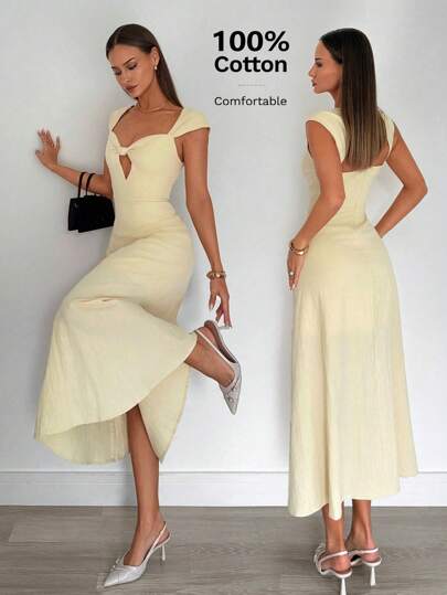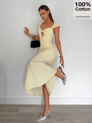 فساتين حريمي Siren Gaze فستان نسائي بلون واحد منتظم لكل يوم بياقة على شكل قلب ومقطوع من الصدر برقيق التصميم