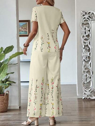 طقم حريمي قطعتين EMERY ROSE 2 قطعة طقم تي شيرت أكمام قصيرة بياقة دائرية وبنطلون مطبوع للنساء ، أنيق للصيف