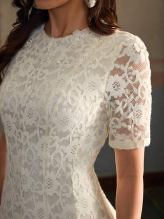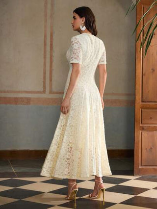 فساتين حريمي ZEYLAH فستان أنيق بأكمام قصيرة وزخارف زهور ثلاثية الأبعاد، عنق مرتفع، مناسب للربيع والصيف