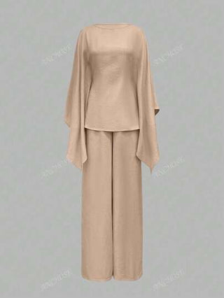 طقم حريمي قطعتين مجموعة فضفاضة من قطعتين للنساء ذات ياقة مجمعة والأكمام مجنحة، بتصميم أنيق وكاجوال للمناسبات