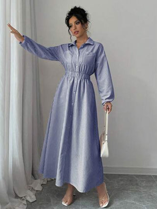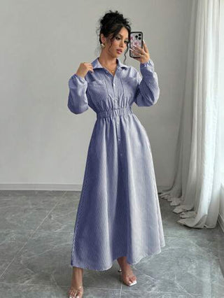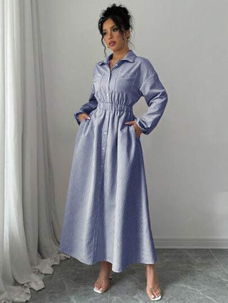 فساتين حريمي Elenzga فستان قميص مخطط بأزرار أمامية كاجوال للنساء لفصل الربيع والخريف