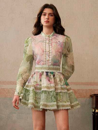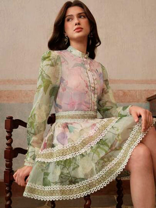 طقم حريمي قطعتين Anewsta فستان أنيق متقطع لمطبوعة زهرية صغيرة بياقة عالية، مجموعة من 2 قطعة، مناسب للربيع والصيف والمناسبات والتخرج