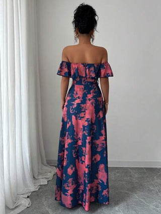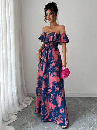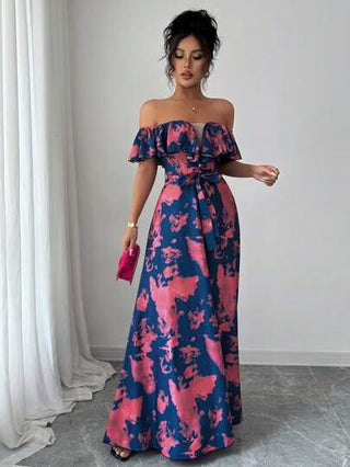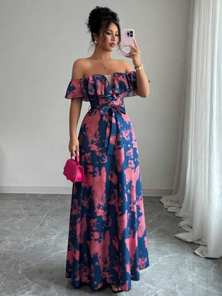 فساتين حريمي Elenzga فستان أنيق للنساء بياقة على شكل حرف V وخصر مطرز وقصة الخط A مع طباعة زهرية لإجازات