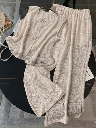 طقم حريمي قطعتين Clasi زوجان من بنطلونات الراحة المحبوكة بتصميم كروشيه مفرغ جديد للنساء في الربيع والصيف (بنمط زهري)
