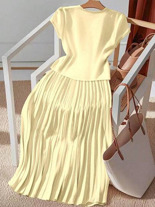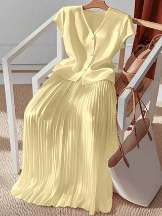 طقم حريمي قطعتين Franclia طقم ملابس علوية أنيقة ذات رقبة على شكل V وتنورة متجعدة لون أحادي للنساء