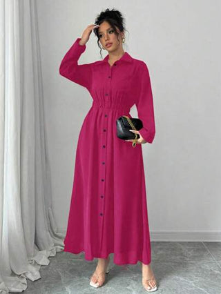 فساتين حريمي Elenzga فستان قميص طويل أنيق وكاجوال بأكمام طويلة ذو أزرار منفردة موحد اللون، ملابس نسائية للربيع والخريف