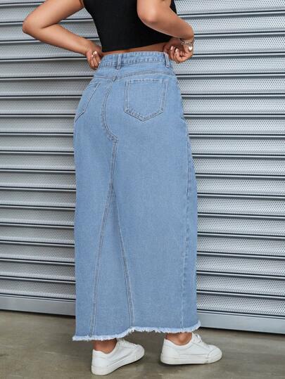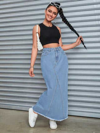 Tall تنورة جينز طويلة ذات حافة خشنة جينز مغسول كاجوال