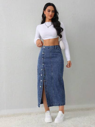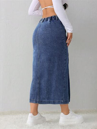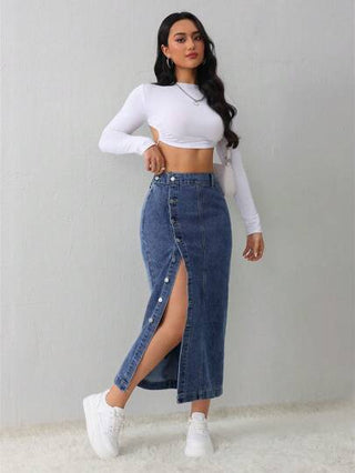 Tall تنورة جينز نسائية غير رسمية فضفاضة ذات شق جانبي، تنورة طويلة من القماش الأزرق الفاتح، ملابس شتوية للنساء بتنورة زرقاء