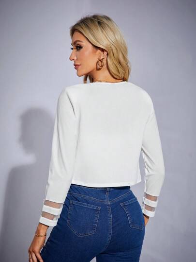Tall جاكيت قصير بفتحة أمامية وحاشية شبكية