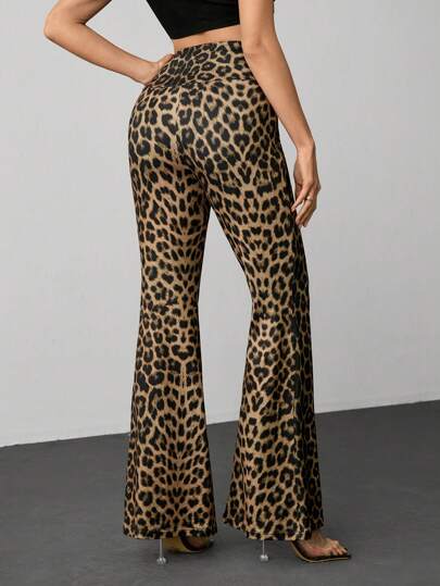 Tall سراويل نسائية أسيمترية الخصر ذات قصة منسدلة مزينة بطبعة نمر عصرية