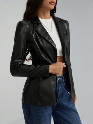 Tall معطف أسود من البوليستر بياقة طوقية وزر واحد